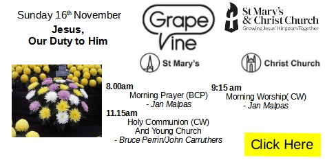 8.00 Simple spoken Service (BCP) 11.15 Worship Service (CW)