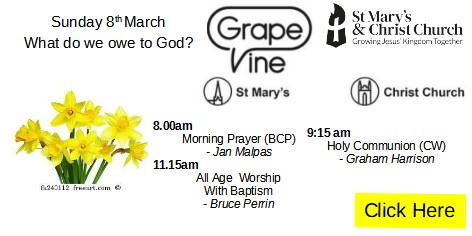 8.00 Simple spoken Service (BCP) 11.15 Worship Service (CW)